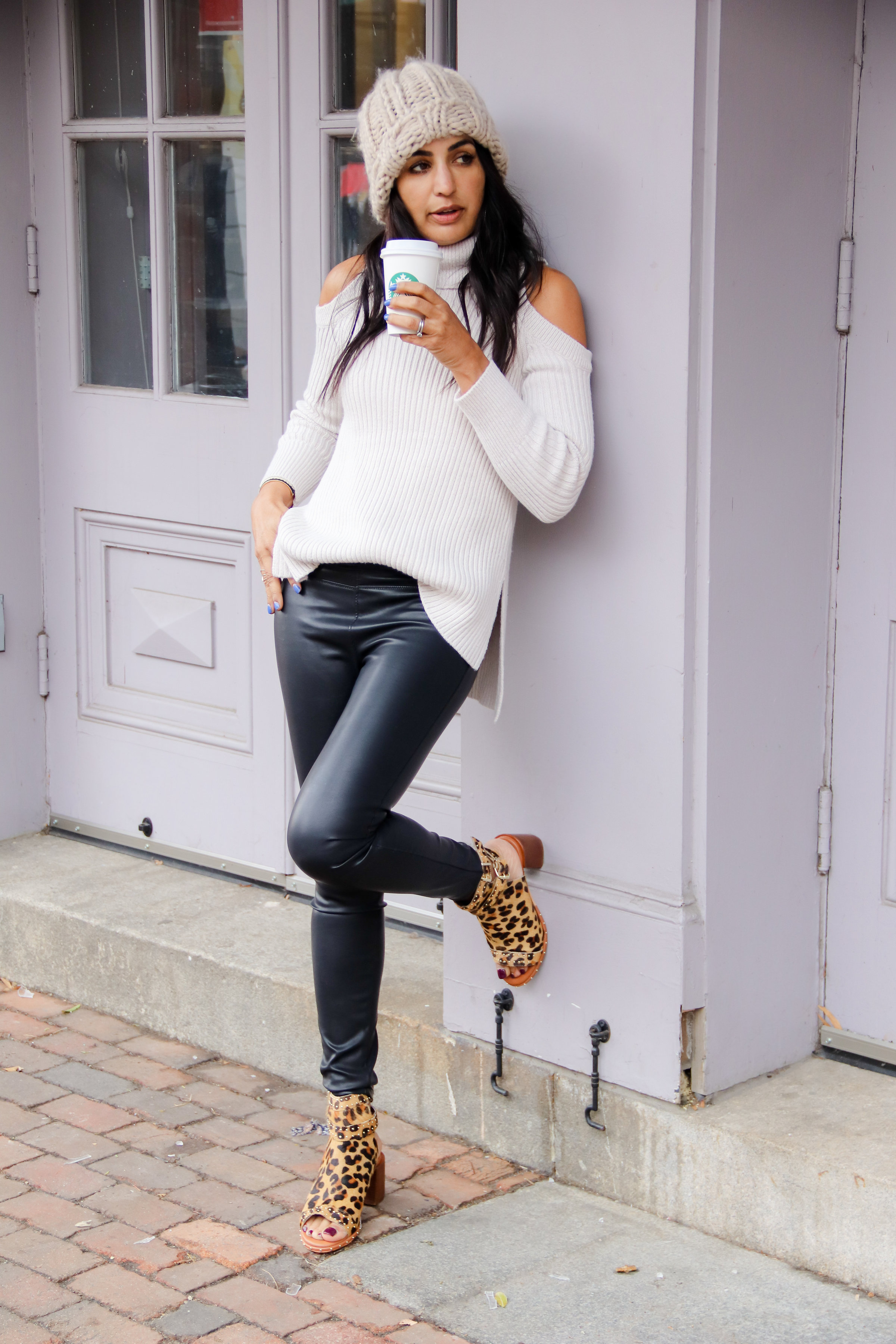If there’s a pair you’ve been eyeing but didn’t dare splurge, why not add it to your Christmas list. Coated jeans and faux leather leggings are popular at this time of year and can elevate an outfit while still keeping it casual.